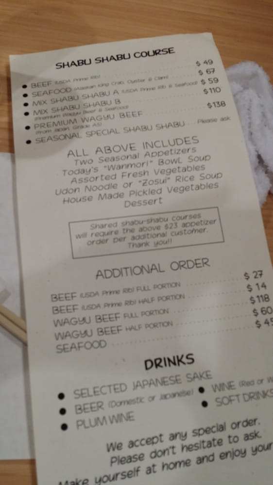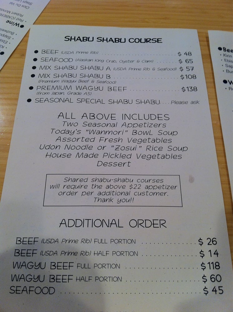 Introducing Tensho, a premier Japanese dining destination located in the heart of Little Tokyo, Los Angeles. This restaurant excels in creating an authentic culinary experience with its exquisite Shabu Shabu course featuring seasonal appetizers, a delightful "wanmori" bowl soup, and options like Udon noodles or "zosui" rice soup.